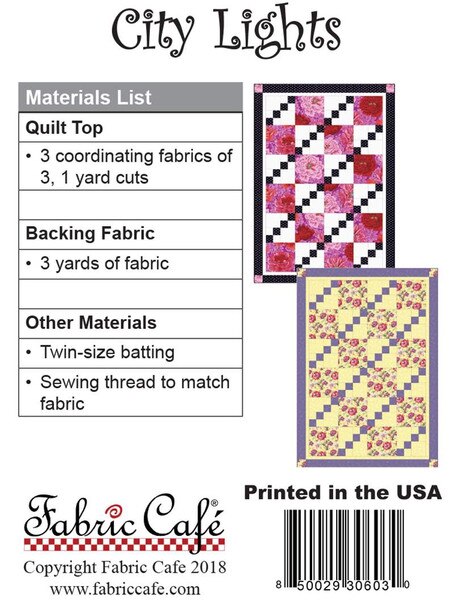 Fabric Café City Lights Quilt Pattern SKU: P016-CITYLIGHTS Please log in to see price or purchase this item Quantity discounts available QuantityPrice