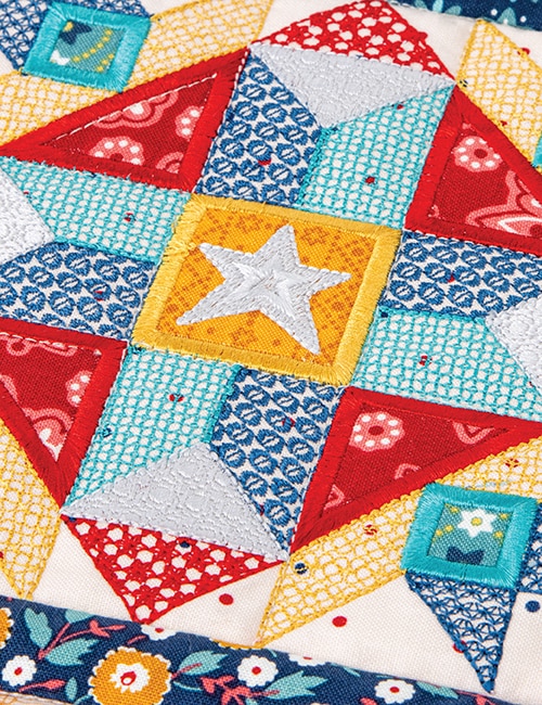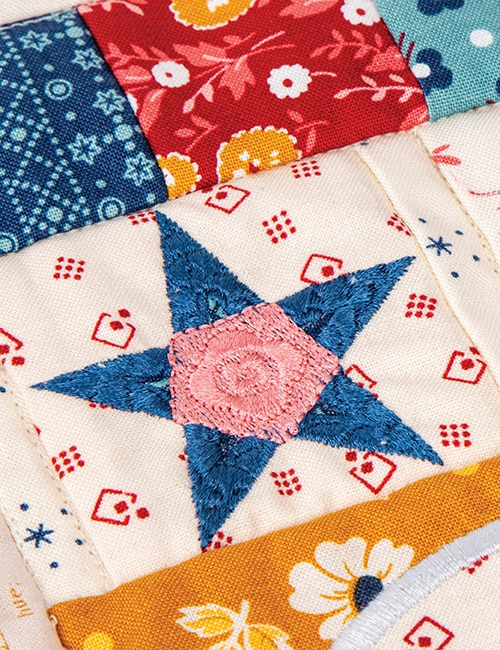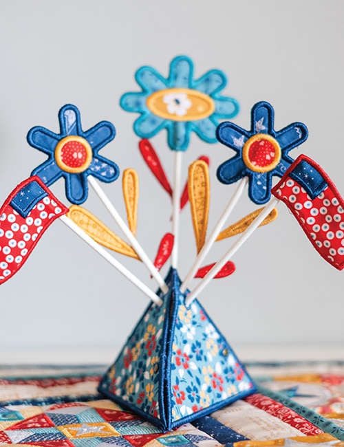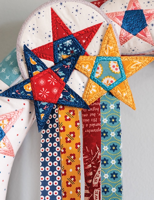 Spruce up your summer season with the America the Beautiful small project collection using Lori Holt’s 2025 Americana fabric collection or Lori Holt & RBD Basics. Pillows, a table runner, door banner, wreath, and 3D In-The-Hoop centerpiece, make this collection the perfect July 4th decorative bundle. ITH piecing and applique, along with free standing applique techniques combine with Bee in my Bonnet’s exclusive cover stitching for a unique finish.