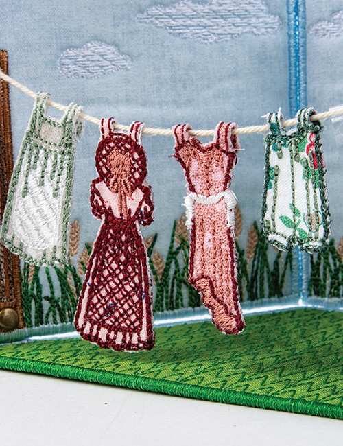 Create a seasonal Prairie House with interchangeable windows, a rustic outhouse, a classic clothesline with removable garments, and farmyard accents like a drinking trough and stacked firewood. Plus, stitch a brand-new quilt block to display on your Prairie Barn from Volume 1.